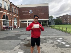 Ralph Lara collecting his A-Level results.
